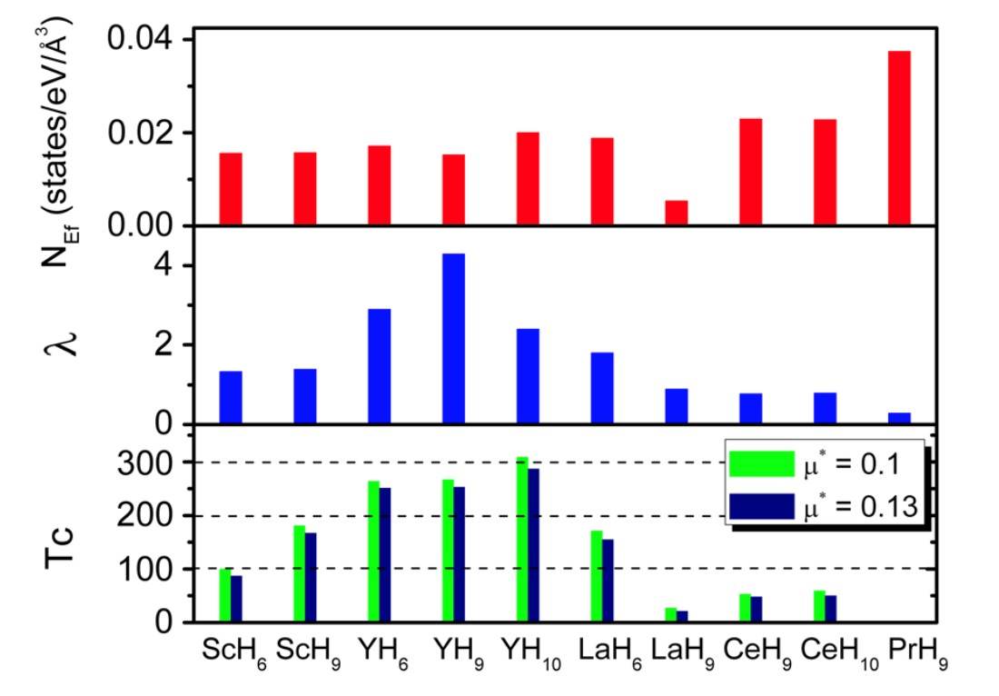 高临界温度超导电性的探索是凝聚态物理学的一个重要课题。自从发现超导电性以来,人们逐渐认识到超导技术有广泛应用的潜在价值。特别是,最近的实验研究发现高压下的硫化氢展现出200 K的高超导转变温度,激发了科学家们的热情去探索压力调控下富氢化合物的室温超导电性的可能。马琰铭教授研究团队采用第一性原理结构搜索方法,预测了高压下具有笼状结构的稀土富氢化合物。研究发现:该类材料的高温超导电性与其氢的笼状结构紧密关联。特别是,笼状结构的YH10在400 GPa的压力下可能存在接近室温的高超导转变温度(303 K)。研究成果发表于Physical Review Letters 119, 107001 (2017)。