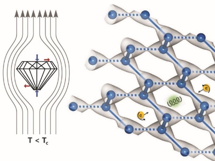 钻石的晶体中,碳原子通过三维强共价sp3杂化轨道成键,并形成正四面体结构。其价电子高度局域在共价键区域,不参与导电,因此,钻石是一种宽带隙绝缘体。钻石的导热系数远高于传统的金属导体,并且能服役于极强电场。如果晶格中存在可自由移动的传导电子,钻石还将在电子器件领域具有重要应用空间。因此,理论和实验工作者都大量研究并报导了掺硼钻石的具有导电,甚至超导的现象,实现了外部引入载流子的无损耗传导。