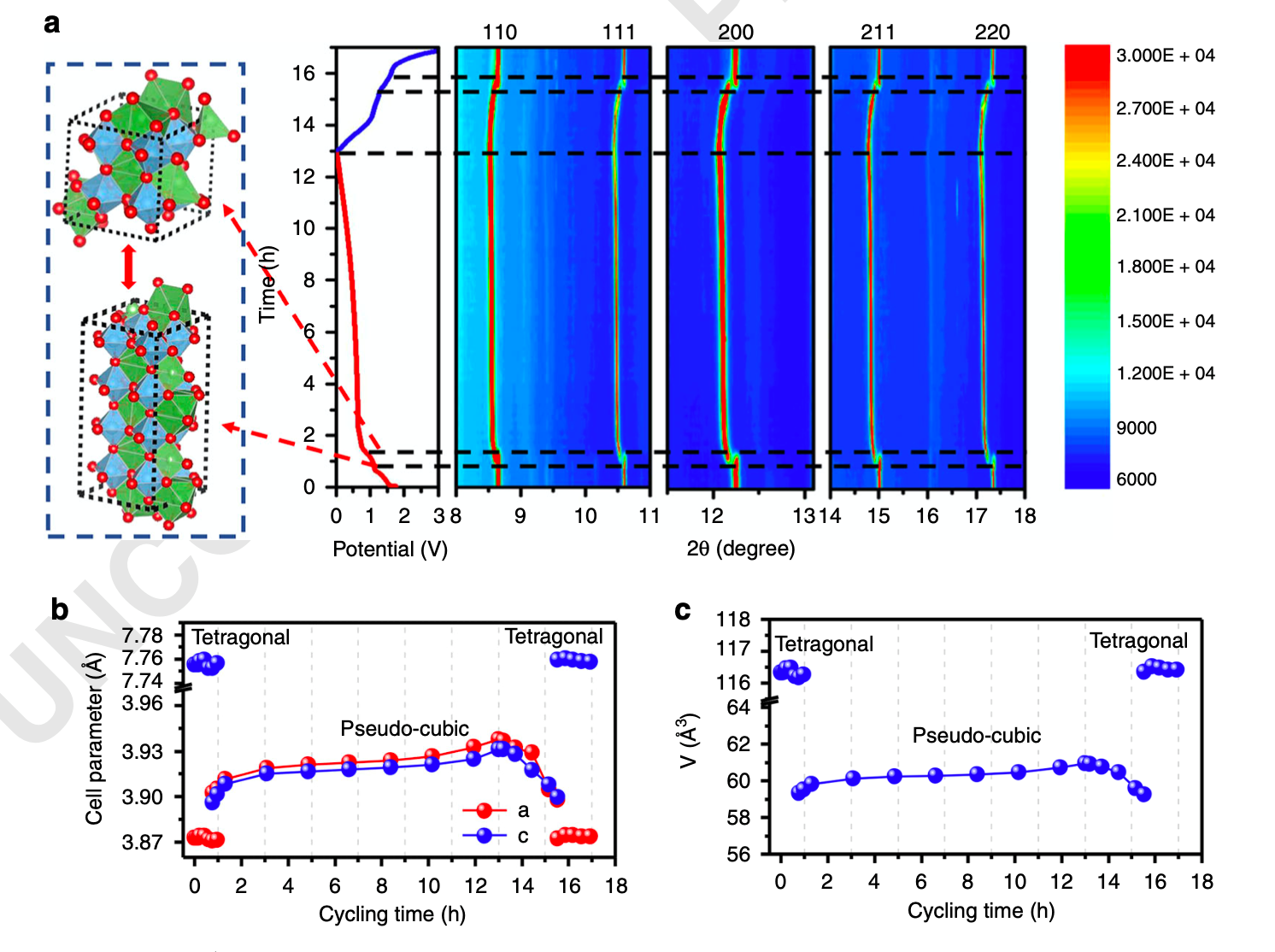PA捕鱼网官网入口2018级凝聚态物理专业博士研究生张璐与东北师范大学博士研究生张孝华、德国卡尔斯鲁厄工学院田桂英博士为本文的共同第一作者。通讯作者为东北师范大学杨国春教授、中科院物理研究所谷林研究员和PA捕鱼网官网入口杜菲教授。卡尔斯鲁厄工学院的Helmut Ehrenberg 教授在原位同步辐射的测试方面也给予了支持。该工作工作得到了国家自然科学基金委面上项目、省科技厅自然科学和国际合作项目等基金的资助。