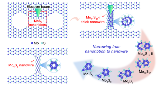 图:从MoS2纳米带到Mo6S6纳米线的窄化过程