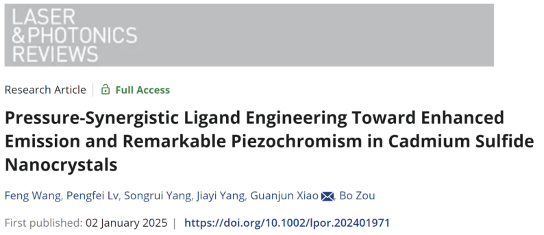 近日,PA捕鱼网官网入口超硬材料国家重点实验室的肖冠军教授等人在CdS纳米晶体的发光调控研究中取得了重要进展。通过压力协同配体工程,成功实现了CdS纳米晶体在不同压力条件下的发光颜色转变,为半导体材料的光致发光性能提升提供了新的策略。相关研究成果以“Pressure-Synergistic Ligand Engineering Toward Enhanced Emission and Remarkable Piezochromism in Cadmium Sulfide Nanocrystals”为题发表在《Laser & Photonics Reviews》上。