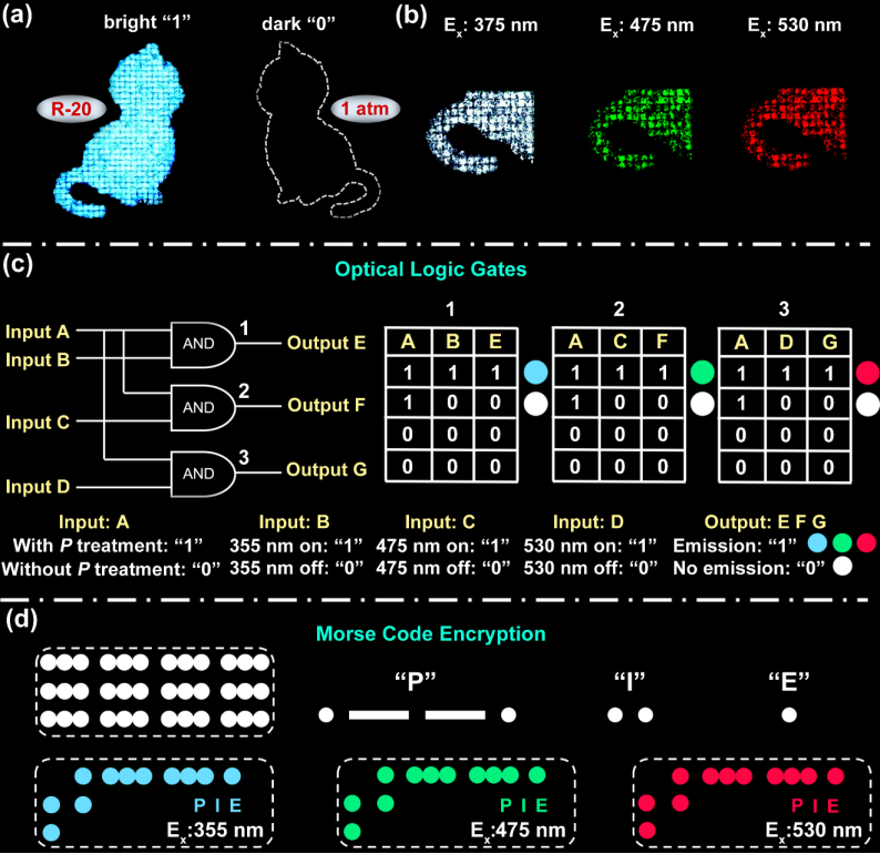 近日,PA捕鱼网官网入口高压与超硬材料全国重点实验室邹勃教授团队肖冠军教授等人,借助压强工程点亮了无辐射锡基金属卤化物,并成功地将高品质发光高压相稳定保存在常压环境,这一常压截获的非晶相发光材料同时展现出激发依赖的动态多色发光调控。高压诱导的不可逆非晶化相变,使我们得以借助大腔体压机实现宏量制备,压强卸载后获得的大质量锡基金属卤化物非晶相发光材料,在固态照明、X射线探测、光学逻辑门与防伪等领域呈现出巨大的应用潜力,推进了压强诱导发光从基础研究迈向实际应用。相关成果以“Pressure-Induced Emission Luminogens Enable Optical Logic Gates toward Lighting, Scintillators and Anti-counterfeiting”为题发表在国际权威期刊《Angewandte Chemie International Edition》上。