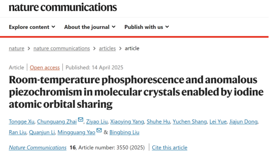 Nat. Commun. | 高压下碘原子轨道共享诱导碳基分子晶体室温磷光的新进展