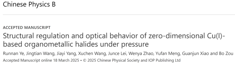近日,PA捕鱼网官网入口高压与超硬材料国家重点实验室邹勃教授团队肖冠军教授等人,系统研究了零维铜(I)有机金属卤化物在高压条件下的结构演化与发光调控行为,深入揭示了电子结构重排对多发射态发光行为的调控机制,通过高压精确调控晶体内部的铜-铜相互作用以及空间电荷转移,实现了材料发光性能的多发射态调控,为开发新型可调谐无铅金属卤化物发光材料奠定基础。相关研究以“Structural regulation and optical behavior of zero-dimensional Cu(I)-based organometallic halides under pressure”为题发表于《Chinese Physics B》上。