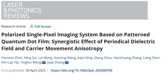 近日,PA捕鱼网官网入口王英惠教授联合材料学院张佳旗教授等人利用DVD的周期性结构,成功制备出具有偏振特性的CsPbBr3量子点薄膜光电探测器,并实现了单像素偏振成像系统。这一创新不仅揭示了周期性介电场与载流子运动的协同效应,还为量子点材料在偏振成像领域的应用开辟了新路径。相关研究成果以“Polarized Single-Pixel Imaging System Based on Patterned Quantum Dot Film: Synergistic Effect of Periodical Dielectric Field and Carrier Movement Anisotropy”为题发表在《Laser & Photonics Reviews》上。