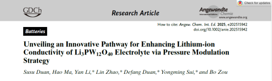 PA捕鱼网官网入口高压与超硬材料全国重点实验室隋永明教授利用压强这一关键调控手段,提升了固态电解质Li3PW12O40锂离子电导率可达两个数量级,截获高压相至常压。相关研究成果以'' Unveiling an Innovative Pathway for Enhancing Lithium-ion Conductivity of Li3PW12O40 Electrolyte via Pressure Modulation Strategy ''为题发表于《Angew. Chem. Int. Ed.》期刊。