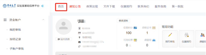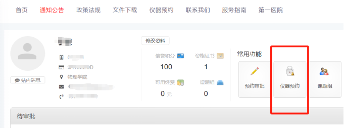 1. 学生用自己账号登陆PA捕鱼网官网入口实验室综合管理平台,登陆完成后进入仪器预约项目。