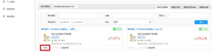 13.预约人登陆仪器共享平台后可查看付款情况,如果显示已完成,则完成扣款。并可在清单中查看协议。