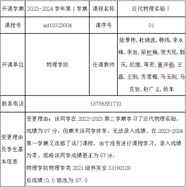 根据《关于进一步明确本科生课程考核等有关问题的通知》(校教字[2018]47号)文件有关精神,现对一下课程成绩更正进行公示: