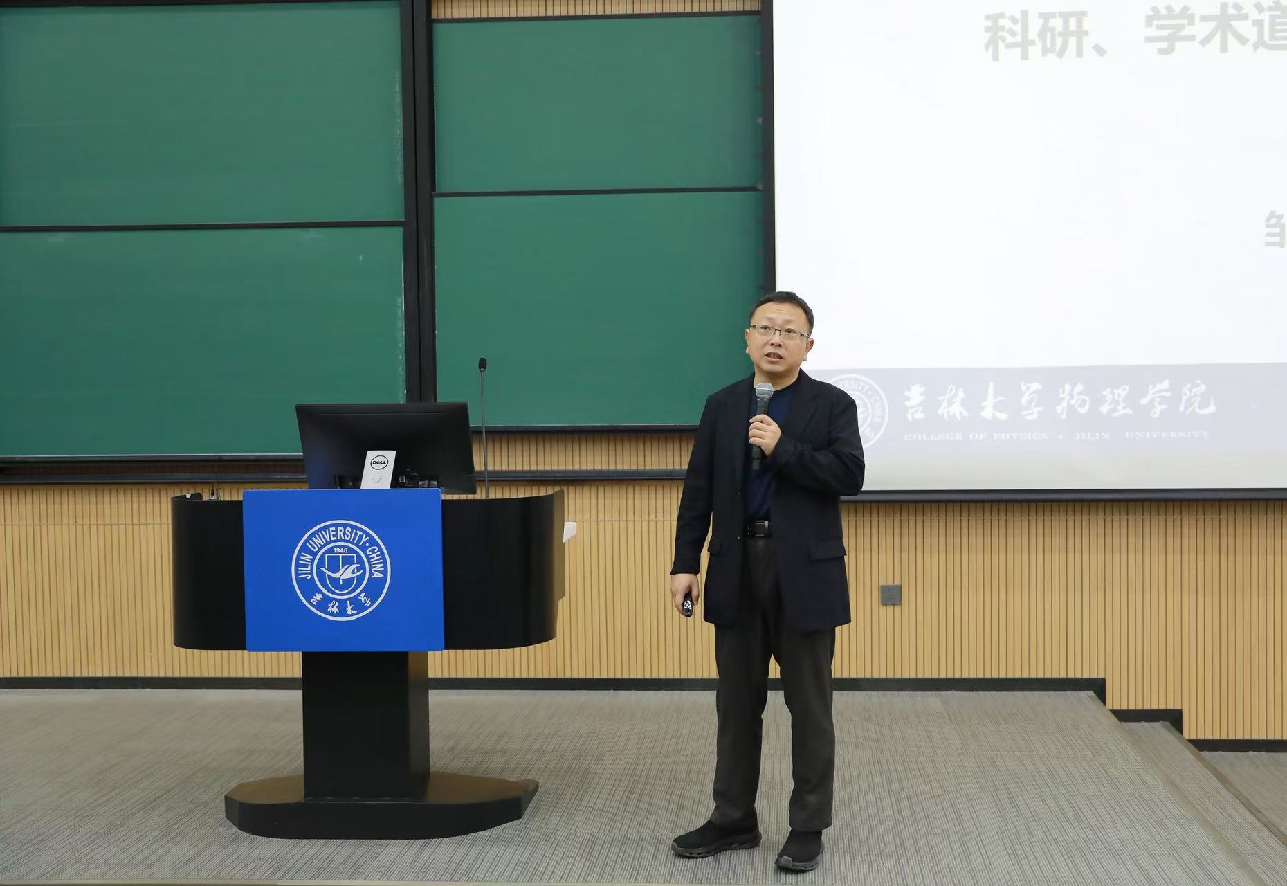 邹勃教授首先从我国古代、近代至现代一系列杰出科学家的贡献讲起,并特别介绍了吉大物理学科的发展历程及创始人之一余瑞璜院士的学术事迹,以此激发同学们的民族自豪感与文化自信,增强大家的“中国自信”与“吉大自信”。