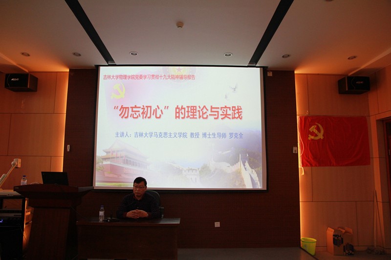 罗克全教授从“初心”的哲学含义入手,围绕中国共产党使命这一主题,回顾了中国近代历史发展进程,从经济落后、政治落后,发展到文化落后,逐渐失去自信。中国共产党是在近代中国衰落最低谷时诞生,是救中国人民于水火的政党,中国共产党人的初心和使命,就是为中国人民谋幸福,为中华民族谋复兴。此外,罗教授对十九大报告和习近平新时代中国特色社会主义思想做了深入分析,他从哲学的角度解释了没有自由的平等不是真实的平等这一理论,并指出作为共产党员要拥有坚定的共产主义信仰,把握“勿忘初心”这一主题。