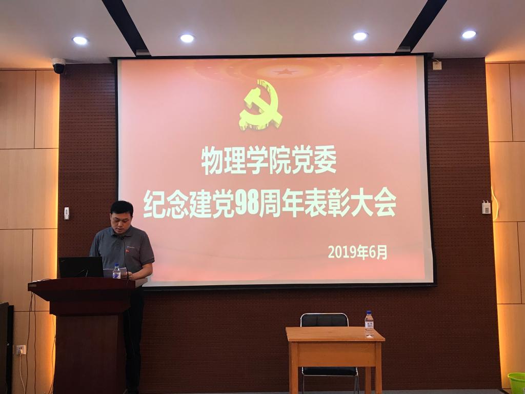 学院党委副书记兼副院长杨讴菡宣读了2019年PA捕鱼网官网入口优秀共产党员、优秀党务工作者、先进党支部表彰决定。闫羽等28名同志荣获“PA捕鱼网官网入口优秀共产党员”称号;李志慧等13名同志荣获“PA捕鱼网官网入口优秀党务工作者”称号;PA捕鱼网官网入口理论与原子核教工党支部、PA捕鱼网官网入口超硬材料国家重点实验室教工党支部、PA捕鱼网官网入口行政教工党支部、PA捕鱼网官网入口本科学生第二党支部荣获“先进党支部”称号。