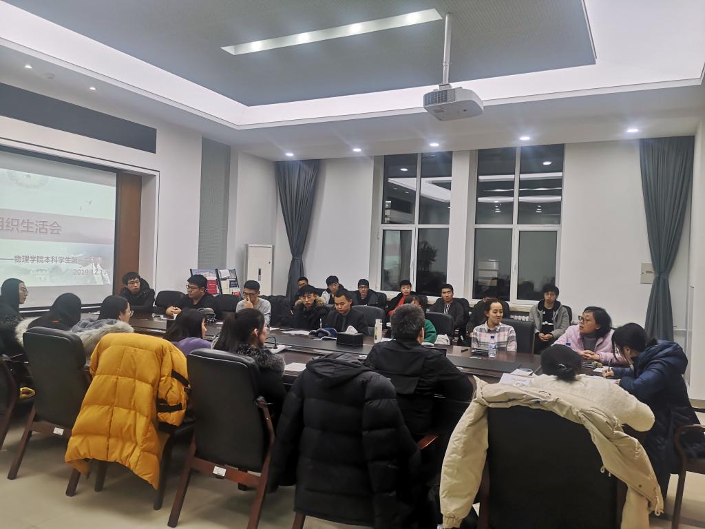 根据习近平总书记关于开展“不忘初心、牢记使命”主题教育重要讲话和重要批示精神,为深入学习贯彻习近平新时代中国特色社会主义思想,提升基层党组织组织力,严格党员教育管理监督,积极响应学校《关于召开“不忘初心、牢记使命”专题组织生活会和开展民主评议党员的通知》要求,PA捕鱼网官网入口本科生第一党支部于12月13日晚召开了2019年度组织生活会及民主评议党员大会,学院党委书记孟文卓老师列席会议进行工作点评与指导。会议由PA捕鱼网官网入口本科生第一党支部书记赵洁斯主持,全体支部党员参加。