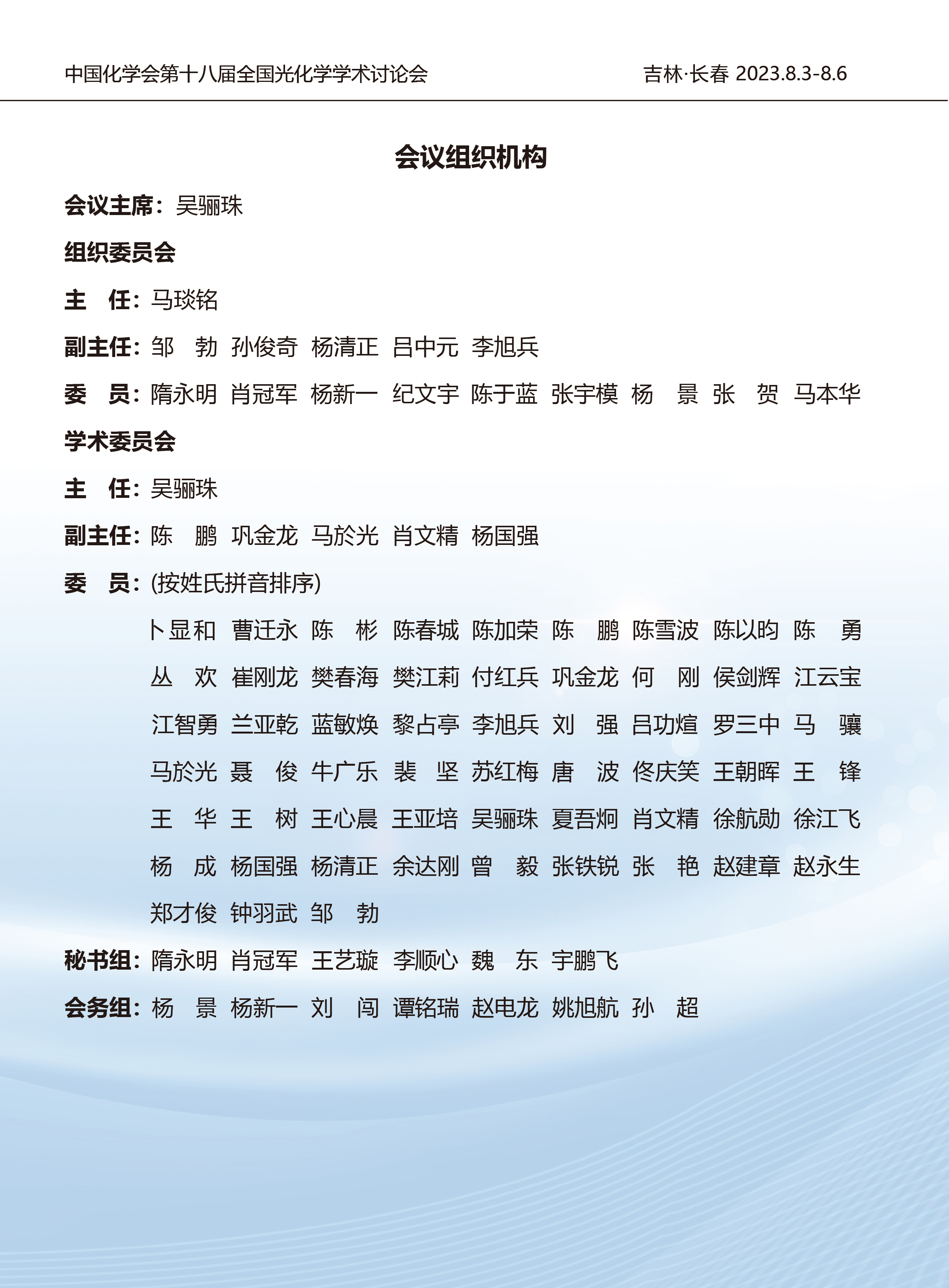 2023中国化学会第十八届全国光化学学术研讨会第三轮通知