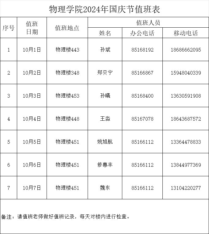 为保障学院假期生产安全以及方便广大师生假期各项业务办理,学院假期值班安排如下图。