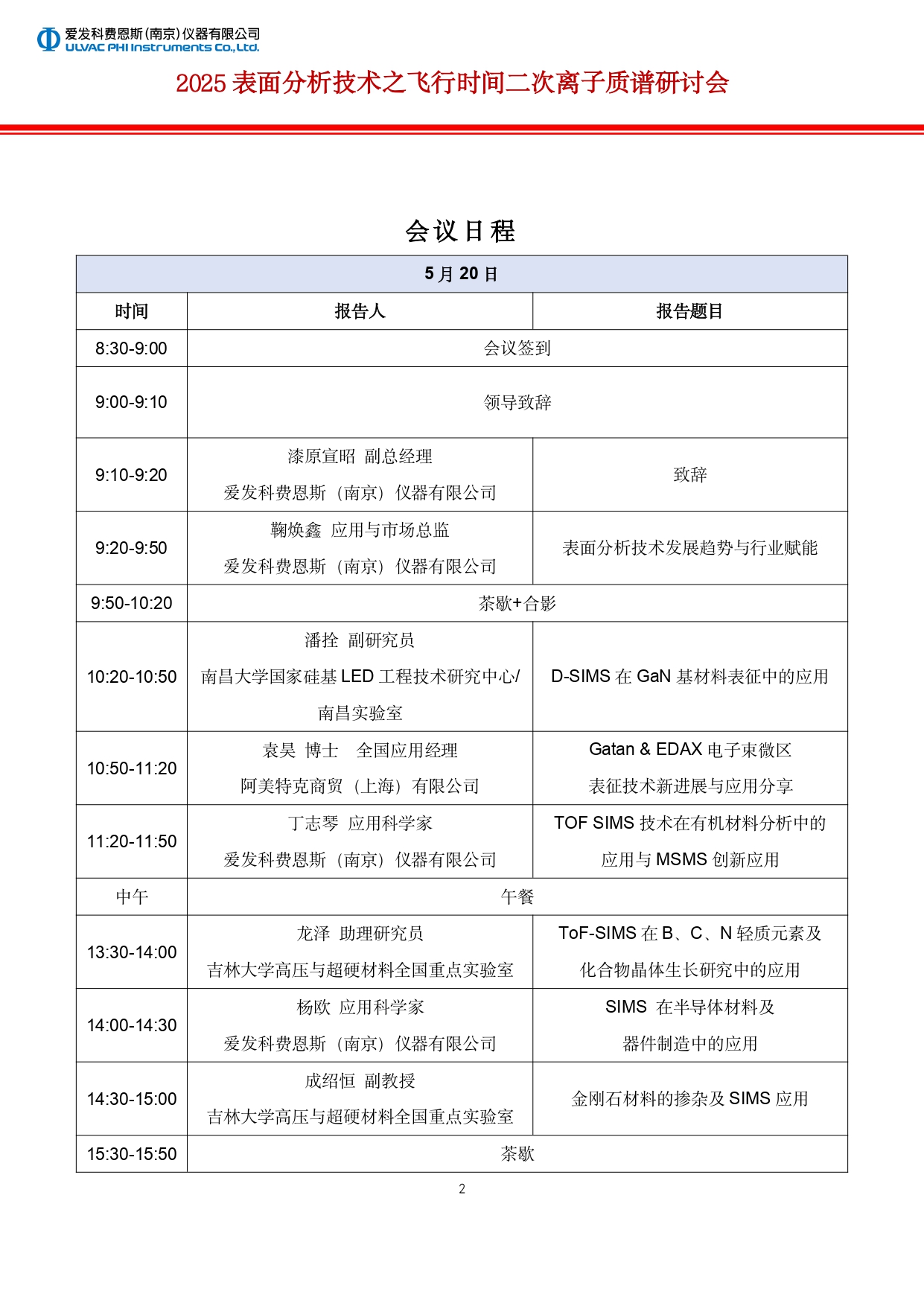 2025表面分析技术之飞行时间二次离子质谱研讨会