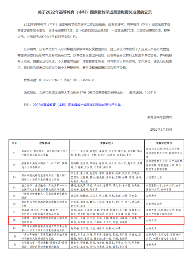 2023年5月15日,教育部公示了2022年高等教育(本科)国家级教学成果奖拟授奖成果名单。PA捕鱼张汉壮教授主持完成的“多维度一体化物理学类课程育人模式的创新实践”喜获国家级教学成果奖二等奖!