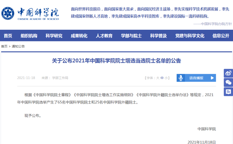 11月18日,中国科学院公布2021年中国科学院院士增选当选院士名单,此次选举共产生了65名中国科学院院士,其中吉大物理校友迟力峰教授榜上有名。热烈祝贺迟老师!