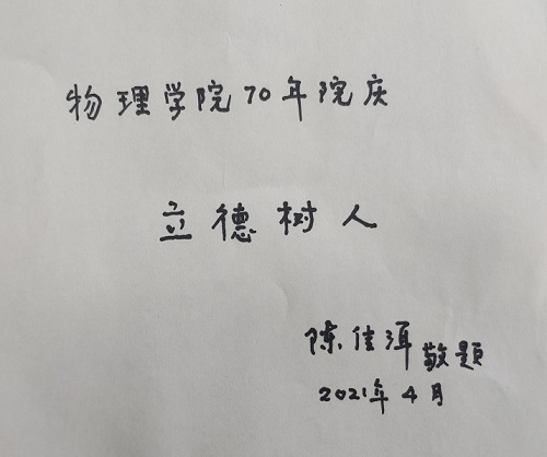 陈佳洱先生为PA捕鱼网官网入口70周年院庆题词