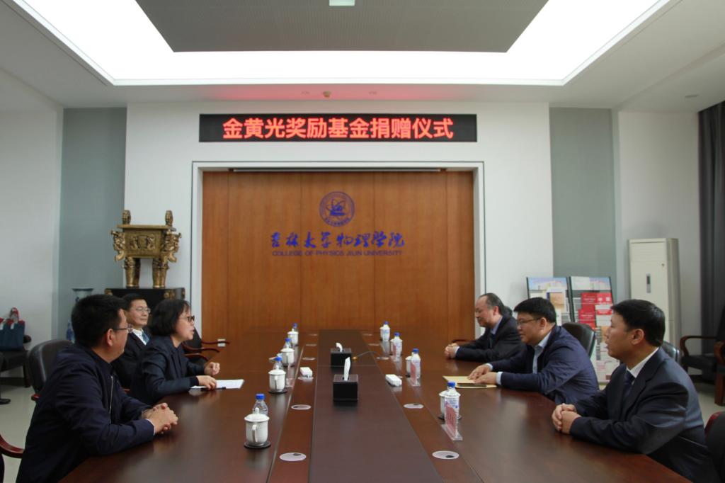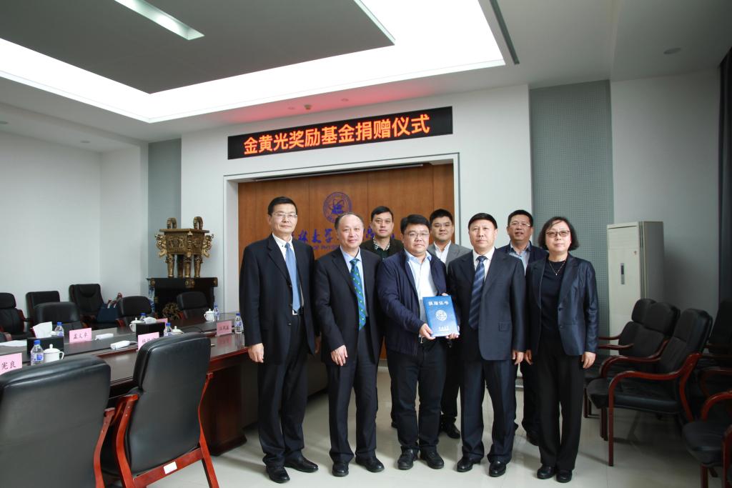 2020年9月21日上午,PA捕鱼网官网入口“金黄光奖励基金”捐赠仪式在物理楼301会议室举行。PA捕鱼网官网入口杰出校友中国科学院院士江风益、南昌金黄光半导体照明有限公司董事长杨俊宁、PA捕鱼网官网入口副校长郑伟涛、PA捕鱼网官网入口校友联络和教育基金管理处处长迟宪良、PA捕鱼网官网入口党委书记孟文卓等出席捐赠仪式。仪式由PA捕鱼网官网入口党委书记孟文卓主持。