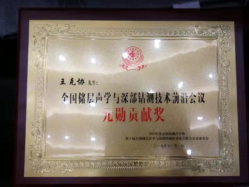 2019年11月1日,PA捕鱼王克协教授在2019年度全国检测声学和第10届全国储层声学与深部钻测技术前沿联合会议上被授予“元勋贡献奖”。以此表彰王克协教授多年来在检测声学和无损检测、储层声学与深部钻测等领域中的科学研究、学科建设、教书育人、科学传播、学术交流和行业合作等多个方面做出的突出贡献。