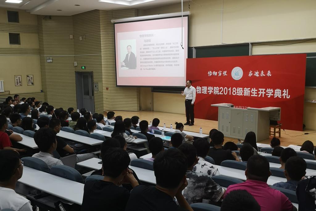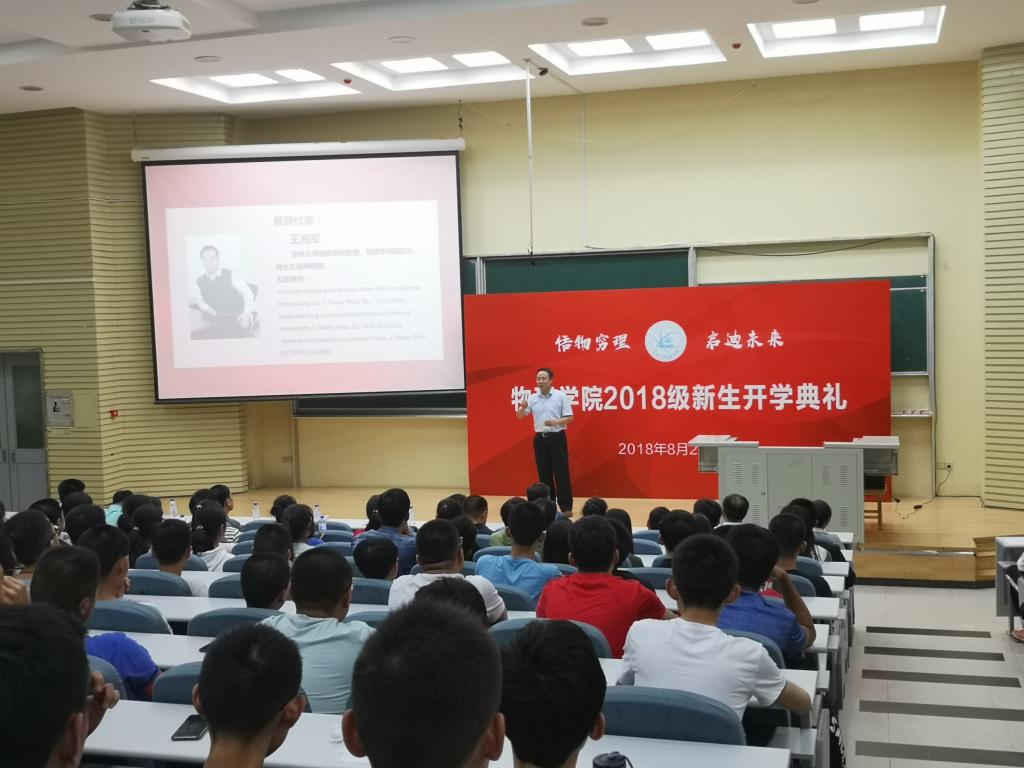 随后,2018级新生代表、来自山东的徐煜博同学代表全体新生登台发言。他首先感谢了为他们的成长付出艰辛劳动的父母和老师,并表达了对进入PA捕鱼网官网入口,开始大学学习的美好憧憬。他号召全体新生在坚持学习,勇敢追求真知和梦想,做个让自己骄傲的物理人。