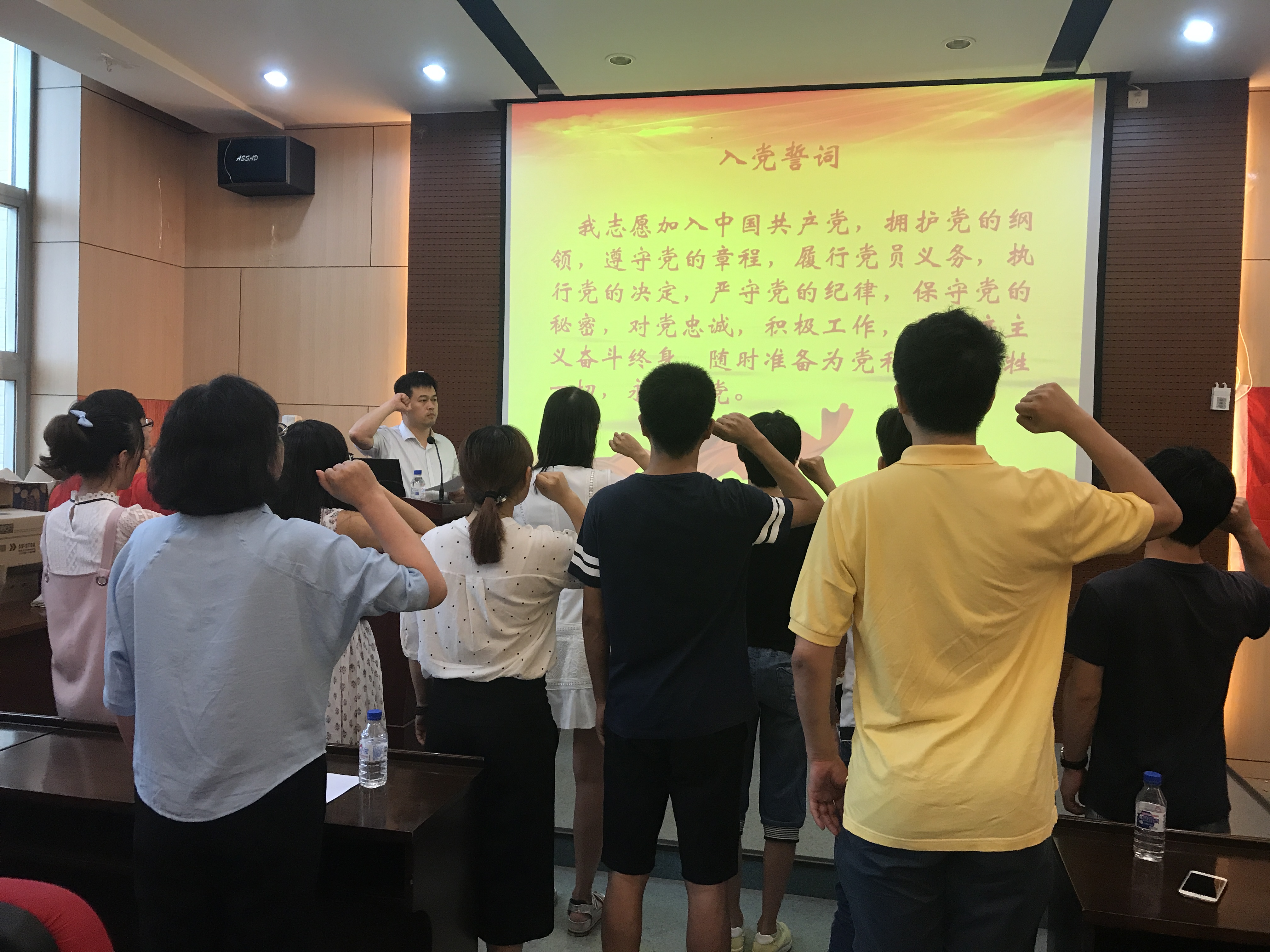 6月30日,PA捕鱼于物理楼333室开展“庆祝建党九十六周年党员宣誓暨优秀党员表彰大会与专题党课”系列活动。全体教师党员、新发展学生党员与优秀学生党员代表参会,共100余人。会议由党委副书记孙长伦主持。