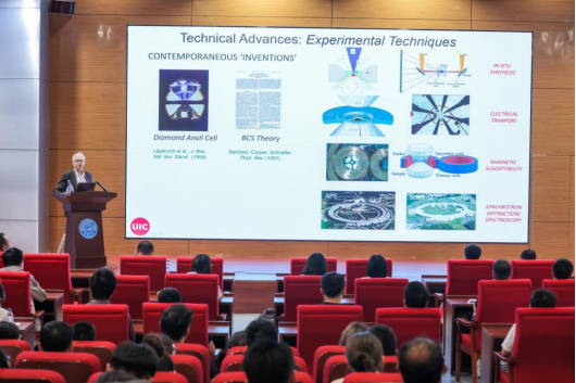 2025年5月30日上午,美国科学院院士、伊利诺伊大学芝加哥分校Russell J. Hemley教授应邀在PA捕鱼网官网入口中心校区国际学术大讲堂做客PA捕鱼网官网入口鼎新讲座。Hemley教授以“Progress in High Tc Superconductivity Under Pressure”为题,为学校师生带来了一场前沿学术盛宴。
