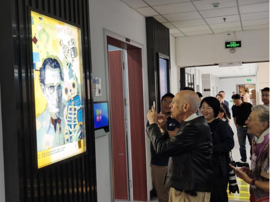 Svanberg院士在学院教师精心设计制作的科普光栅画前驻足欣赏。这些作品巧妙融合艺术美感与科学原理,生动形象地展示了物理知识。