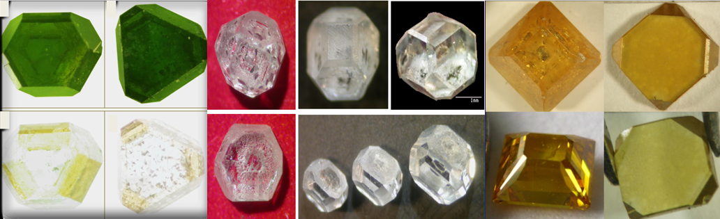 刘冰冰教授在文中详细阐释了高压高温(HPHT)技术的发展脉络。早期科学家曾尝试通过铁管压缩碳氢化合物(James Hannay,1879)或熔铁淬火(Henri Moissan,1893)等方法合成金刚石,但直到Bundy团队设计出能产生10GPa、2300K的专用压机,才实现稳定合成。现代多面砧装置技术已在亚毫米级样品腔突破60GPa极限,刘冰冰教授团队今年基于国产多面砧压机更在毫米级样品腔上实现室温60GPa、1900K高温50GPa的超高压强。
