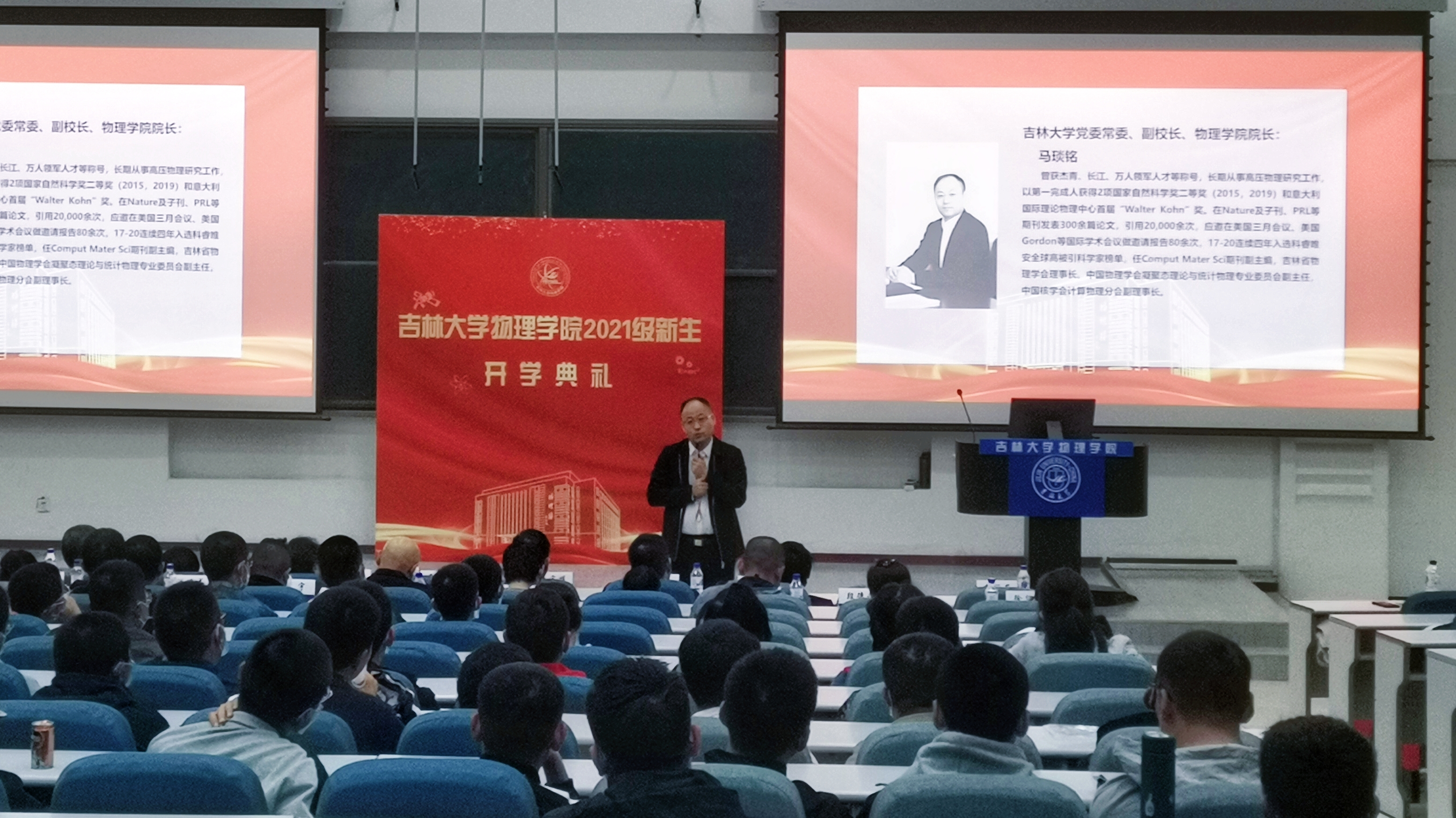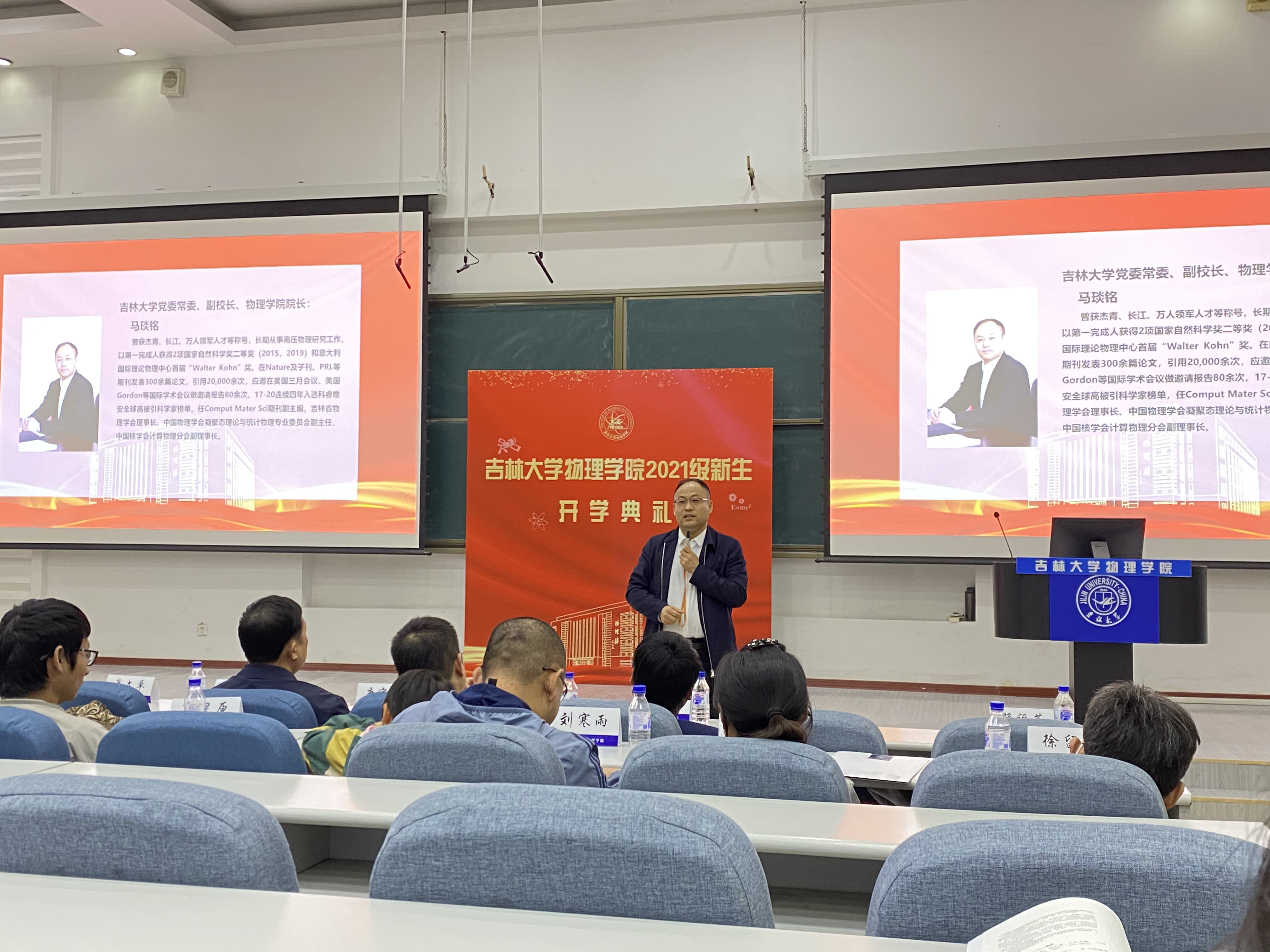 马琰铭院长先是对2021级成功考入PA捕鱼网官网入口的新生表示祝贺。院长表示,PA捕鱼网官网入口作为国家指定的物理学科“双一流”建设单位,有着很强的学科实力,PA捕鱼网官网入口对于新生的到来表示极大的欢迎,吉大物院也必将因为新血液的加入而更加充满活力。PA捕鱼网官网入口始建于1952年,由余瑞璜、朱光亚、吴式枢、勾清泉、霍秉权、郑建宣、高墀恩、黄振邦、解俊民等一批物理学界泰斗以满腔的爱国之情,放弃原有的优越生活、工作条件,奔赴长春而创建,是一个有历史、有底蕴、有传承的学院,更形成了自己的文化与精神,即坚韧不拔,追求卓越。每个物理人都应该秉持这种精神,终身学习,不断进步。马琰铭院长由衷地表示,大学阶段其实是人生的分水岭,只有全力以赴的努力,珍惜每一次学习的机会,利用好各种平台和资源,提升自己的能力,才能避免被淘汰,在以后的事业中力争上游。各位新同学作为“双一流”学科学生,应该把复兴中华民族作为自己的责任,贯彻习近平主席的讲话精神,将自身的发展和国家前途命运联系在一起,尽自己一份力量推动祖国科学技术发展,这样才能让自身发展达到新的境界。