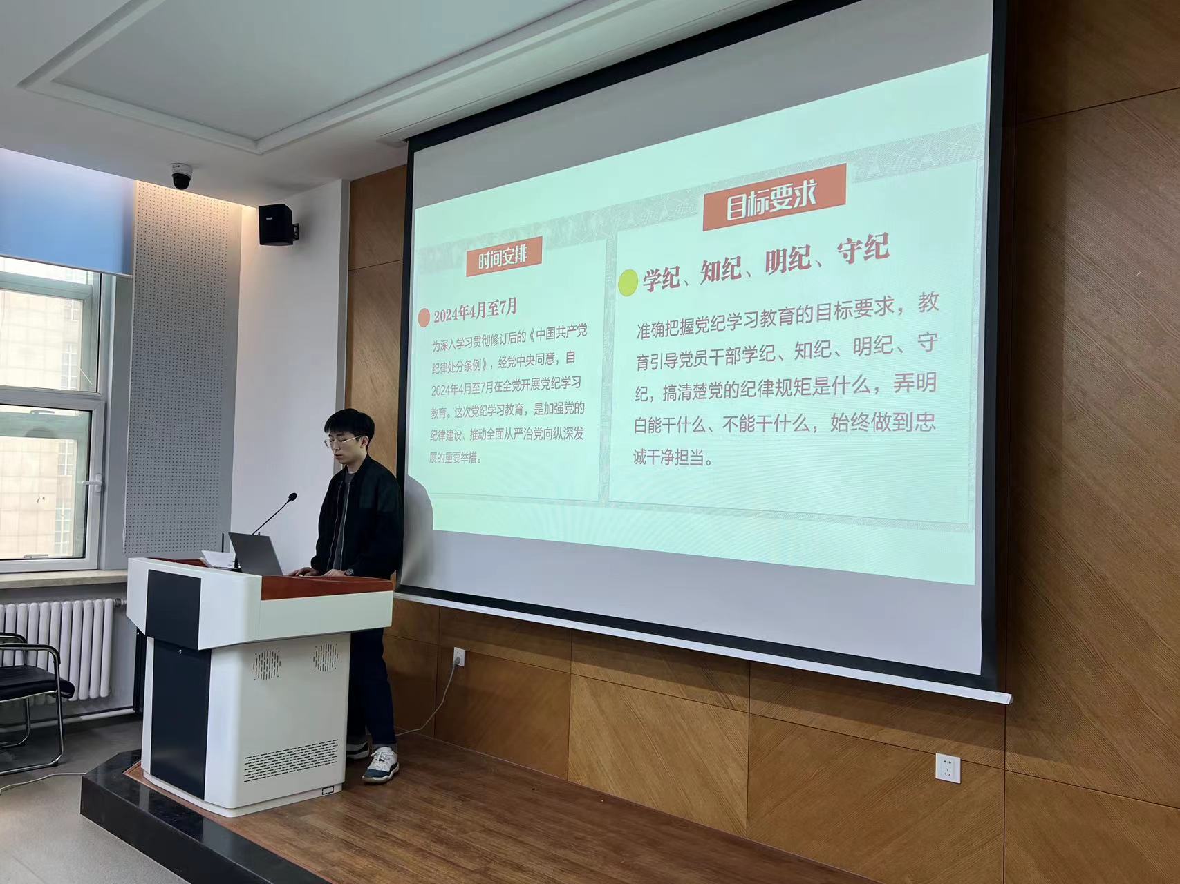 会上主要传达了学校、学院党委关于党纪学习教育的安排部署,深入学习贯彻习近平总书记关于党纪学习教育的指示批示精神,研究部署本科学生党支部下阶段党纪学习教育具体工作,将开展党纪学习教育作为重要政治任务,要求全体党员同志坚持以习近平新时代中国特色社会主义思想为指导,原原本本学,做到个人自学与集中学习相结合,学纪、知纪、明纪、守纪,搞清楚党的纪律规矩是什么,弄明白能干什么、不能干什么,始终做到忠诚干净担当。