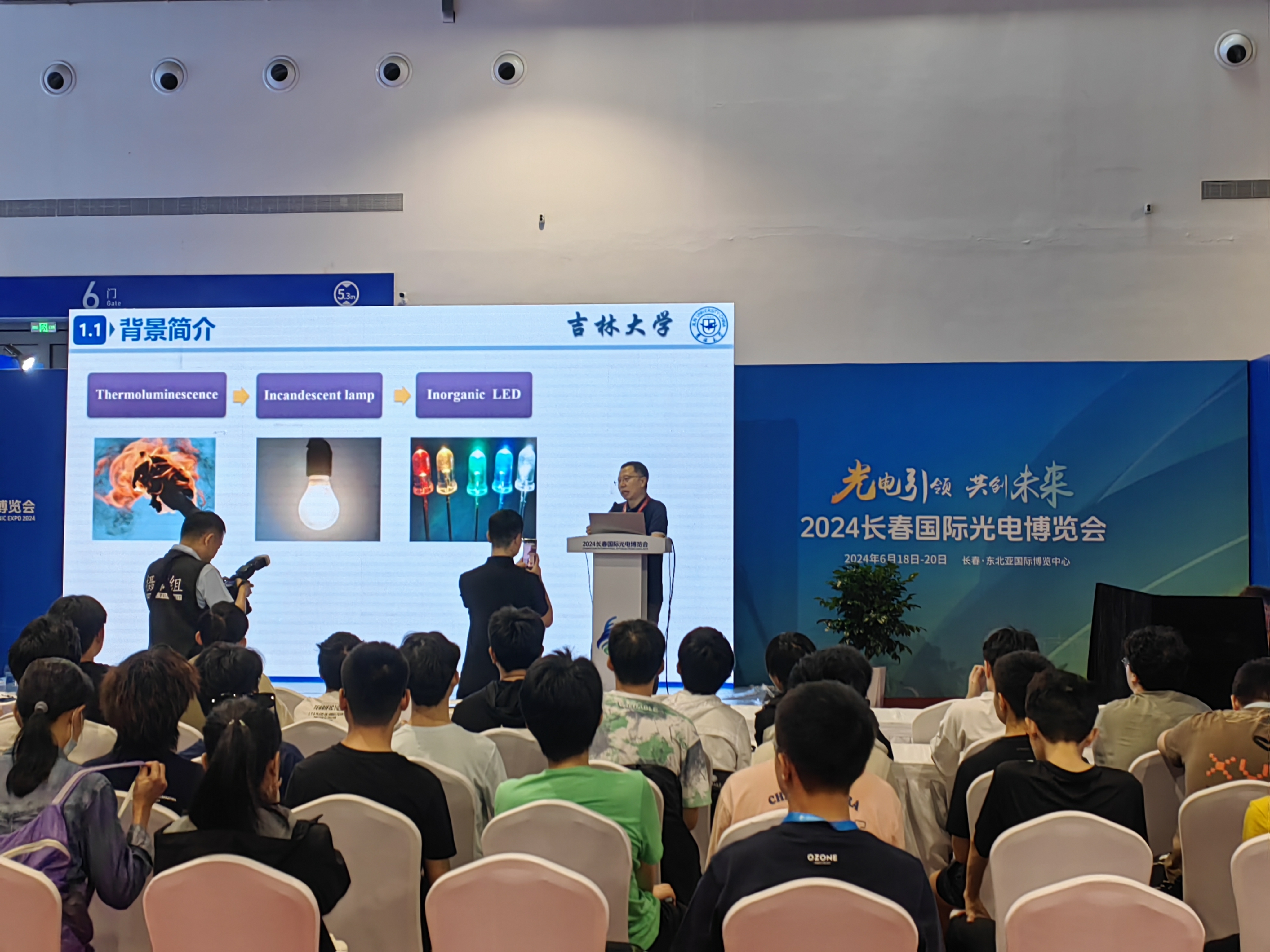 6月18日,2024首届长春国际光电博览会在长春东北亚国际博览中心开幕。PA捕鱼网官网入口承办《可见光通信的产业化未来发展趋势》分会场。学院邀请华创芯光公司董事长朱斌斌,PA捕鱼网官网入口教授纪文宇,新加坡南洋理工大学王本全,做专题报告,会议由PA捕鱼网官网入口副院长王海军主持,PA捕鱼网官网入口党委副书记兼副院长杨讴菡、本科生辅导员刘扬、车禹剑、赵一安出席会议,同时组织PA捕鱼网官网入口各专业本科生参加会议。